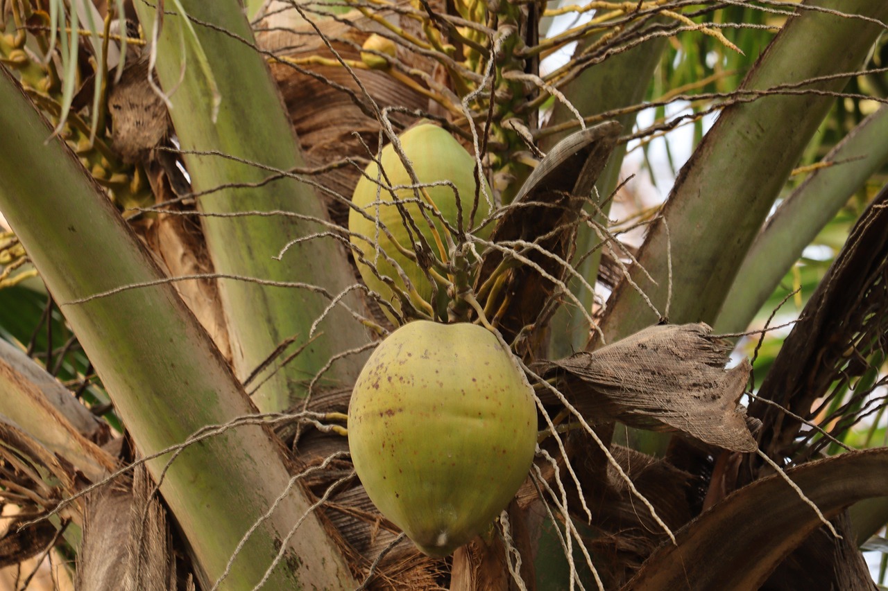 Fresh coconuts on tree